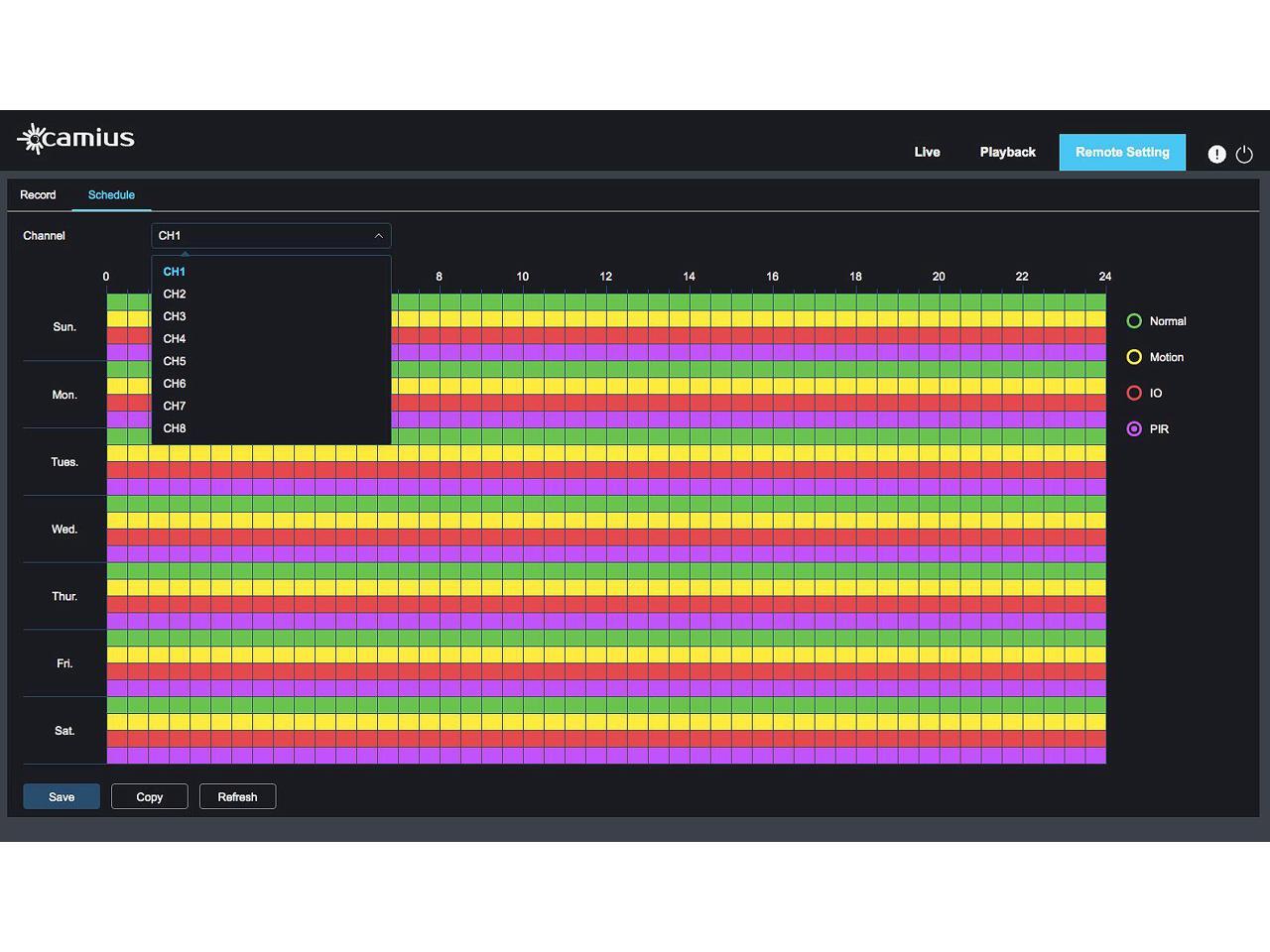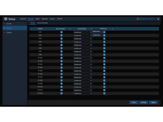- Motion, Sound, PIR, Intelligent Detection, Scheduled, Manual, Continuous Recording, Deterrence (siren, lights)