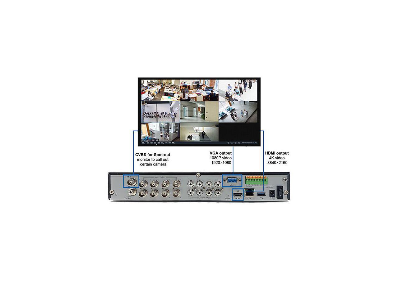 - 4K HDMI output to add an HD monitor, VGA, and SPOT OUT (CVBS) for the 2nd monitor.