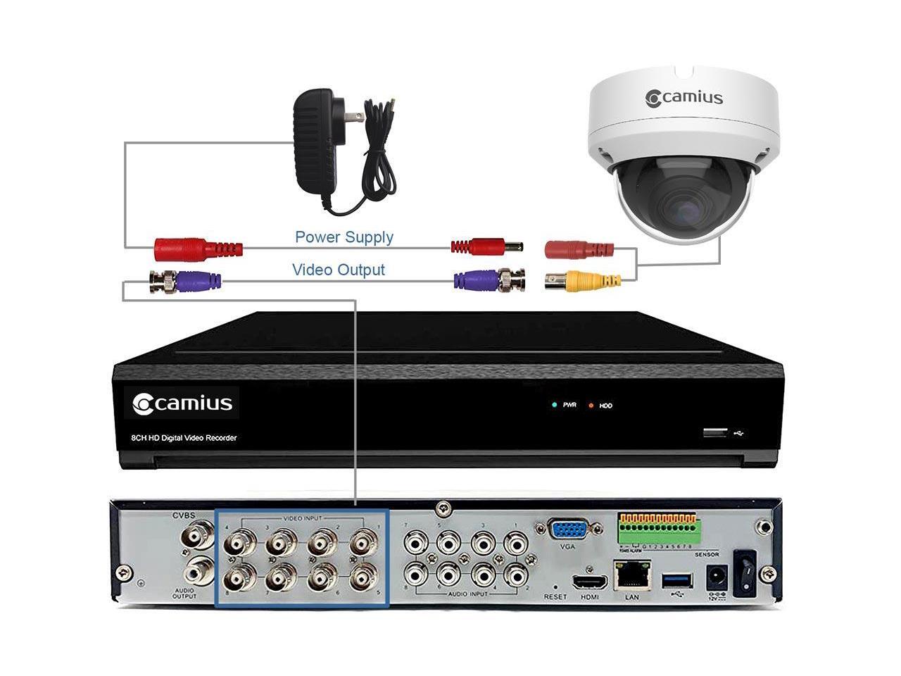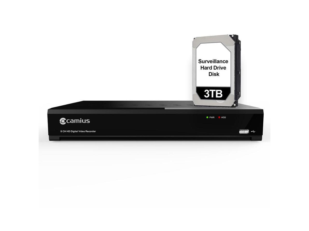 Camius 4K Security 8 Channel DVR with Hard Drive 3TB for 8 Analog CVBS, AHD, TVI, CVI cameras over coax + 4 IP, 4K HDMI, VGA, Spot Out, PC, Mac software, browser, App view - Only DVR, Without Cameras