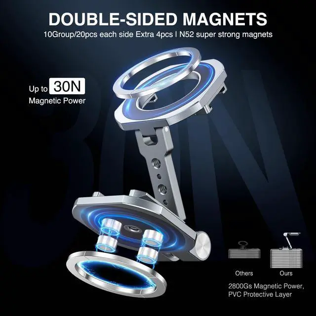 MG-02 Pro Double Magnetic Ring Mount Dual side magnet rings powers 2800Gs, can withstand a weight of up to 20N/4LB+, equivalent to the weight of 10 iPhone 15 Pro Max devices. Ensures a stable phone-holding solution with its extra 4pcs magnet design, a must-have accessory for truck, lorry, tractor, forklift, boat and motor vehicles, also it can stick on gym equipment, refrigerator, fire door, metal rack / shelf, magnetic and other iron surfaces etc