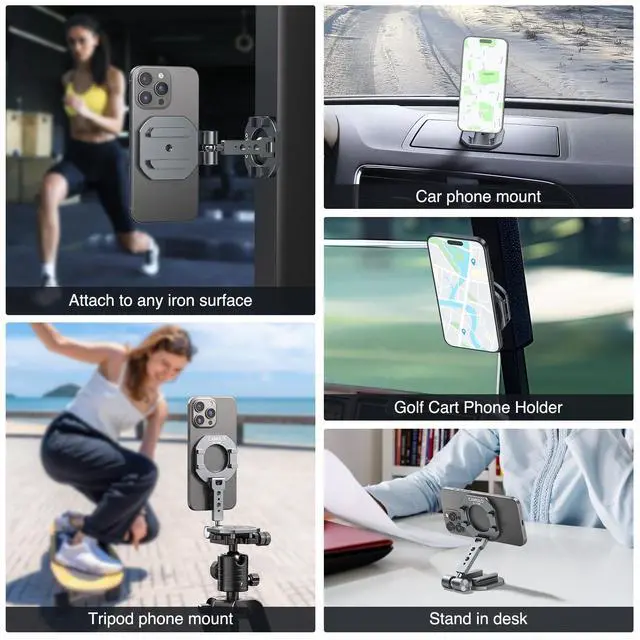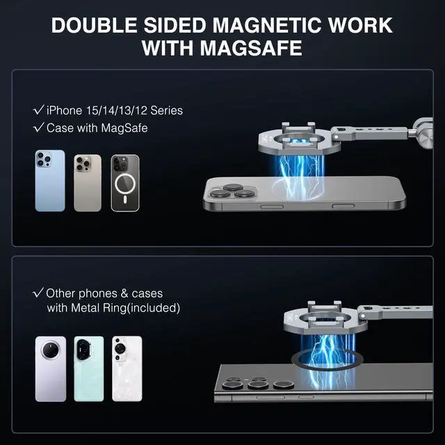 Dual Magnetic Phone Holder Compatiable with Magsafe for iPhone 16 15 14 13 12 Pro Max Plus Series, MG-02 Pro 1/4"-20 Tripod Mount, Gym Magnetic Phone Stand Travel