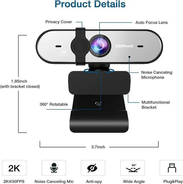 CAMPARK 2K webcam is adopted with 2560*1440 high definition, displaying a fast smooth video at 30 frames per second. It offers advanced capabilities for superior video conferencing.