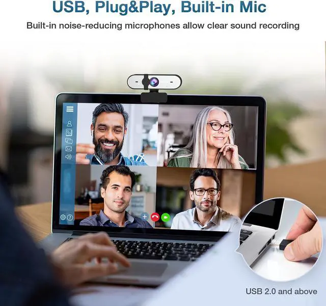 The webcam with microphone with automatic noise reduction make your voice clearer and stereophonic under background noise. The built-in noise-canceling microphone makes the communication superior and realistic for you while video calls.
