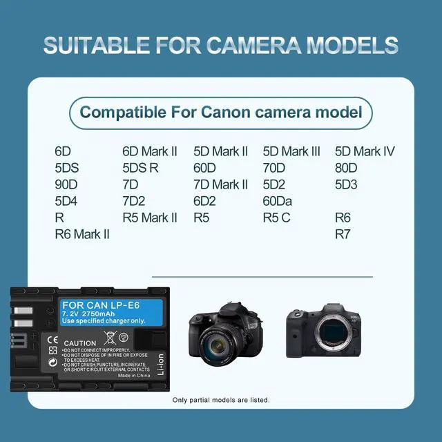 Hassle-Free Replacement: Direct replacement for Canon LP-E6, LP-E6N, LP-E6NH. *Critical: Double-check your cameras battery model in its manual or original battery label.