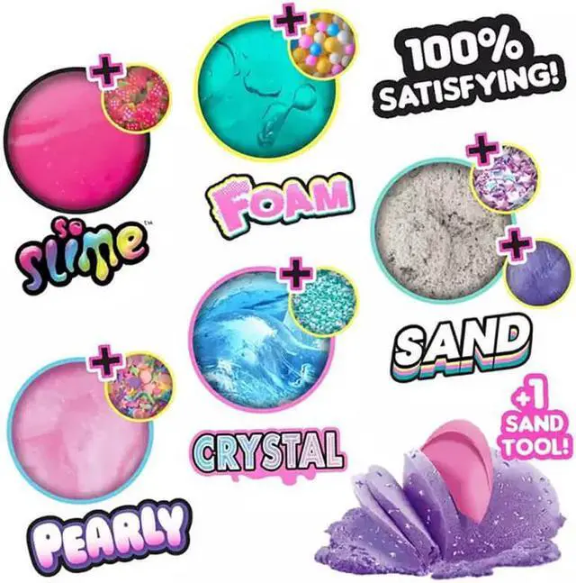 Mix and match your own satisfying sensations with this collection of 4 different compounds plus a storage case! This combo sets includes all your favorites. Combine the 4 different deco packs with 4 different individual compound packs for the ultimate mixin experience. All the compounds come ready to play. The Ultimate Mix n' Match kit for ASMR Lovers! You don't have to choose between stretchy slime or satisfying sand because this kit has both! Have fun playing with stretchy scented slime, satisfying magic sand, squishy fluffy slime, and crackling foam beads! So ASMR! ASMR, or autonomous sensory meridian response, is the stimulation of the senses awakened by soft, repetitive sounds.