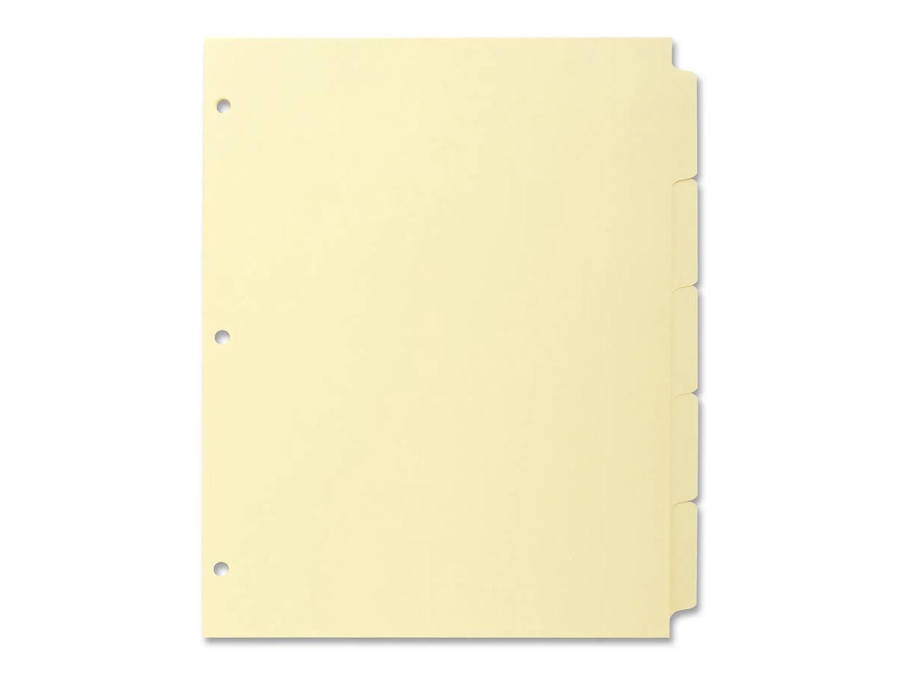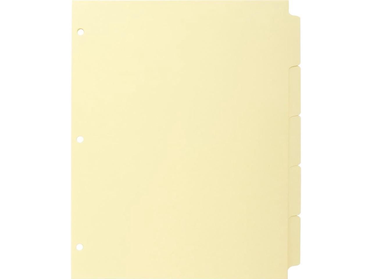 Business Source Plain Tab Indexes 3HP 5-Tab 11"x8-1/2" 36 Sets/BX Canary 16480