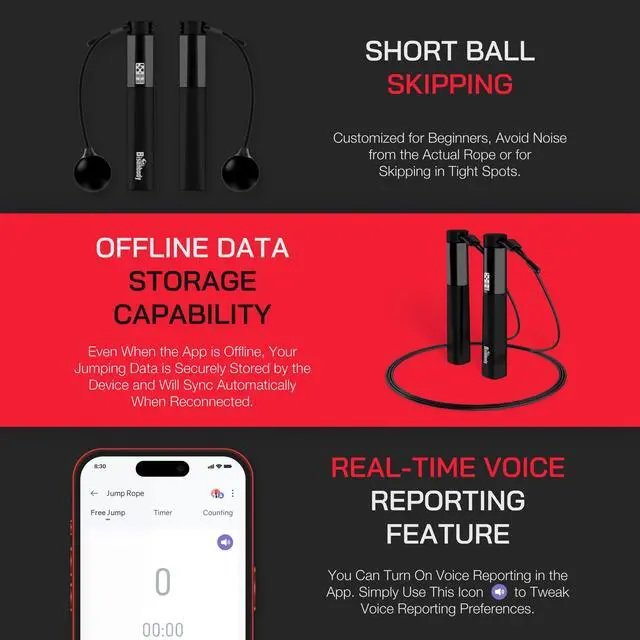 [POWERFUL MULTI-MODE DESIGN] Featuring 2 different modes to suit your workout style, our smart fitness jump rope 2 in 1 cordless skipping rope allows you to choose between the classic 3m rope or go ropeless with the shortballs for a unique experience. Equipped with a rechargeable 60mAh lithium cell battery (Type C), your smart jump rope is sure to perform under intense conditions.