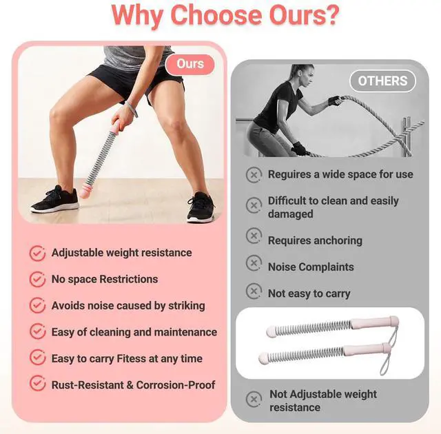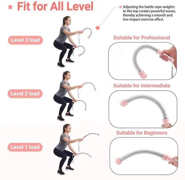 Adjustable Resistance:Easily adjust the intensity to suit your fitness level. Each rope features a weight/resistance that can be modified, making it ideal for beginners, advanced users, HIIT sessions, strength building, and low-impact cardio.