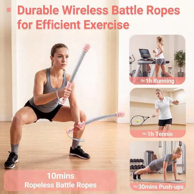 Adjustable Ropeless Battle Ropes for Home Gym-Cordless Training Rope Fitness Equipment for Men & Women,Portable Arm Exerciser Rope for Strength Building, HIIT and Low-Impact Aerobic Training (Pink)