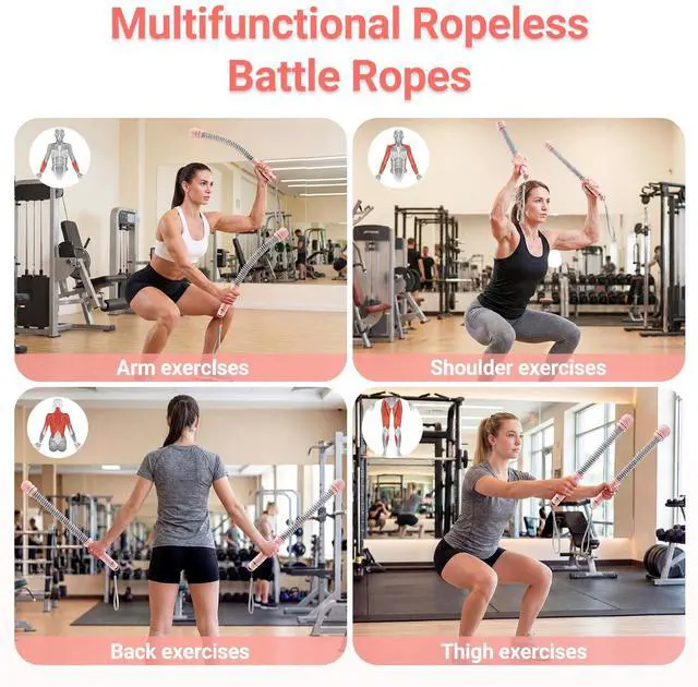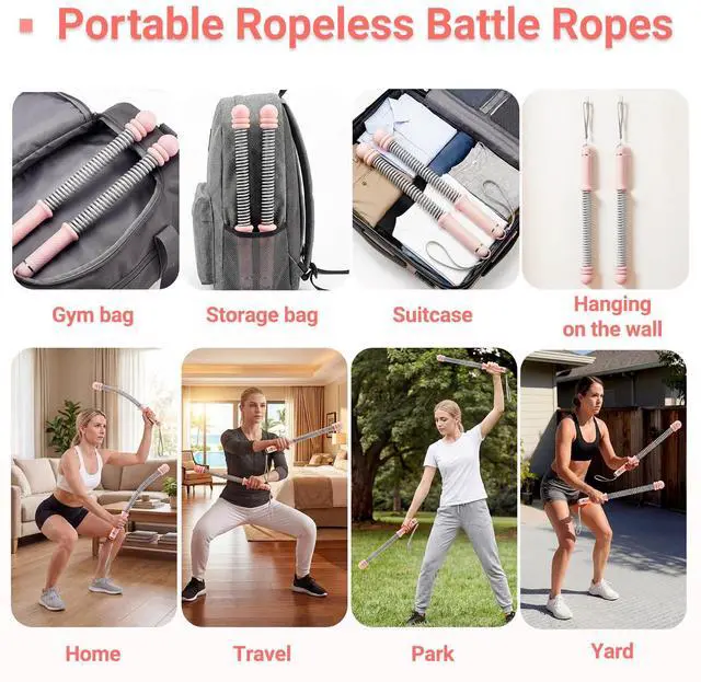 Portable Ropeless Battle Ropes:Each battle rope weighs 1.61 lb, which protects your wrists during exercise and allows you to better feel the weight of the rope during exercise, thereby bringing a better exercise experience and effective exercise results. The exercise rope is compact, easy to carry and store. It is a workout rope for use in home gyms and outdoor training.