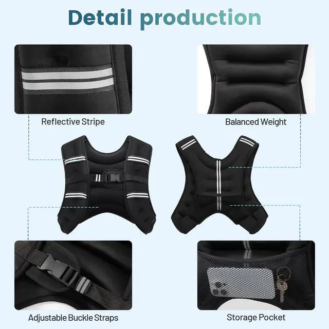 REFLECTIVE STRIPS - Our weighted vest has reflective strips on the front and back to make it easier to see you in low light. This makes it much safer for you to run or ride at night.