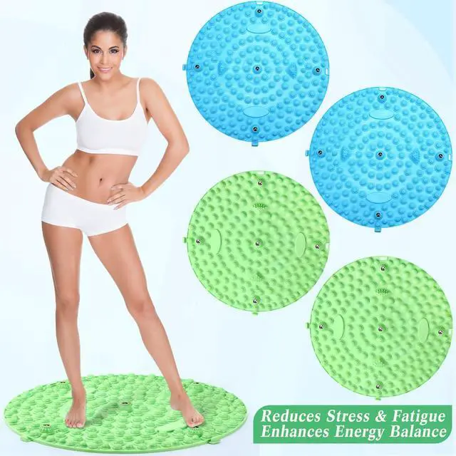 4 Pack Foot Massager Mat Foot Reflexology Pad with Magnetic Relaxation Massage Feet Pressure Point Pad Anti Fatigue Walk Stone Acupoint Mat Particle Portable Massage Tool (Blue and Green)
