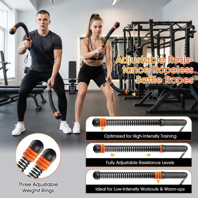 Ropeless Battle Ropes with 3 Adjustable Resistance Rings, Weighted Cordless Battle Rope for Home Gym, Portable Workout Equipment for HIIT, Cardio, Muscle Training & Fat Burning for Men Women (Black)