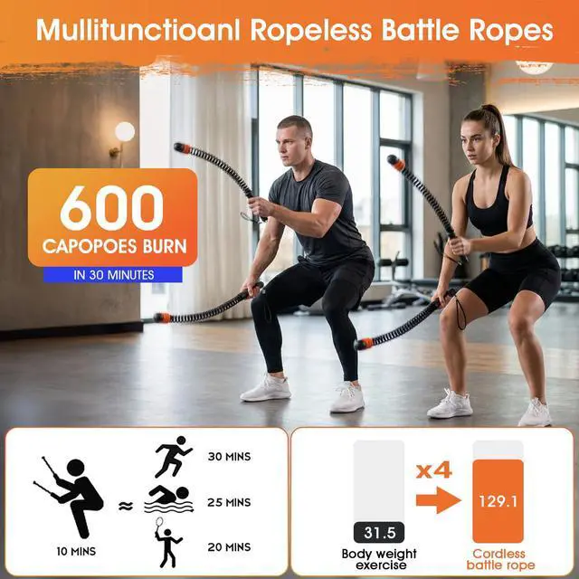 APARTMENT-FRIENDLY & NOISELESSSay goodbye to loud floor slaps and neighbor complaints. These cordless battle ropes allow you to experience the high-intensity burn of traditional ropes without the noise. Perfect for indoor use, apartments, or late-night workouts on any floor surface without damage.