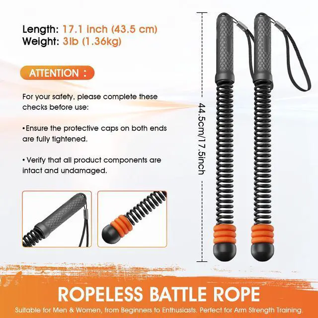 INTENSE FULL-BODY WORKOUTThe weighted core design mimics the centrifugal force of a real rope, effectively engaging your biceps, triceps, forearms, core, and abs. Feel the muscle activation and calorie burn in as little as 40 secondsan efficient home gym equipment for rapid fat loss and muscle toning.