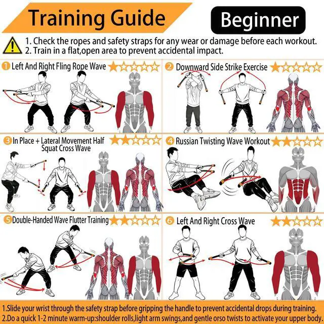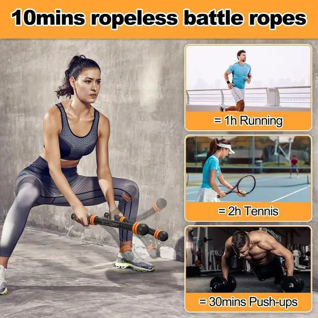FULL BODY TRAININGWeighted Ropeless Battle Ropes perfect for strength training, cardio equipment routines, and agility training. Effectively targets arms, shoulders, core, and legs, making it ideal for HIIT, CrossFit, and functional fitness exercises for both men and women.