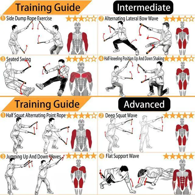 ADJUSTABLE RESISTANCEExperience the freedom of portable cordless battle ropes.Easily adjust the intensity to suit your fitness level. Each rope features a weight/resistance that can be modified, making it ideal for beginners, advanced users, HIIT sessions, strength building, and low-impact cardio.