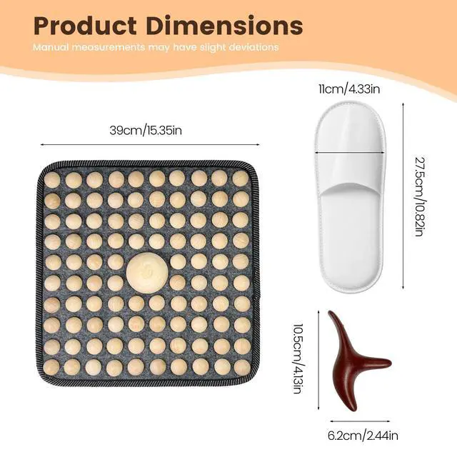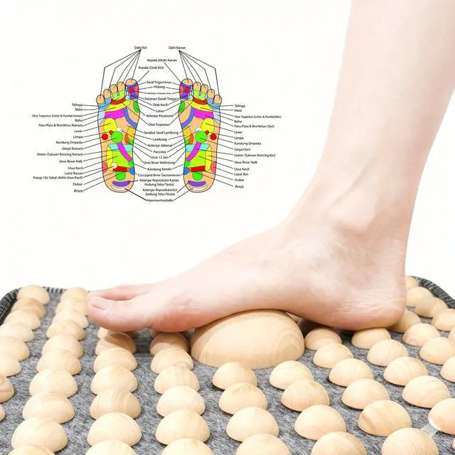 Imagine this: Youve just finished a 10-hour shift on your feet or a long day at your desk. Your heels ache, your arches feel tight, and youre craving relief. Now, picture unwinding in your living room with a natural, drug-free solutionour Wooden Square Foot Acupressure Mat. Designed with ancient reflexology principles and modern practicality, this mat invites you to step into a world of soothing comfort. Youll love how this portable wooden acupressure mat for feet fits seamlessly into your daily routine. Place it by your bed for a refreshing morning wake-up, or keep it under your office desk for discreet midday relaxation. Its foldable design makes storage a breeze, and the natural wood construction ensures durability and an eco-friendly touch. Weve included a special triangle massager tool and a detailed reflexology chart to help you target specific areas like the neck and shoulder reflex points. Whether youre dealing with foot pain, looking to improve circulation, or simply want to melt away stress, this mat offers a gentle yet effective approach. Ideal for plantar fasciitis relief, post-workout recovery, or just enhancing your wellness ritual, this mat is more than a toolits your personal retreat. And because we care about your safety, please note: those with diabetes, vascular issues, or open wounds should consult a doctor before use. Always supervise children around this product. Features: Material: Natural North American Pine Wood (splinter-free, non-toxic) Size: 15.75" x 15.75" (perfect size for focused foot therapy) Design: Foldable, portable, and reversible with varying massage nodes Set Includes: 1x Wooden Acupressure Mat, 1x Triangle Massager, 1x Reflexology Guide Care: Wipe clean with a dry cloth; avoid moisture and direct sunlight Embrace a natural path to relaxation and revitalization. Add to cart today and feel the difference!