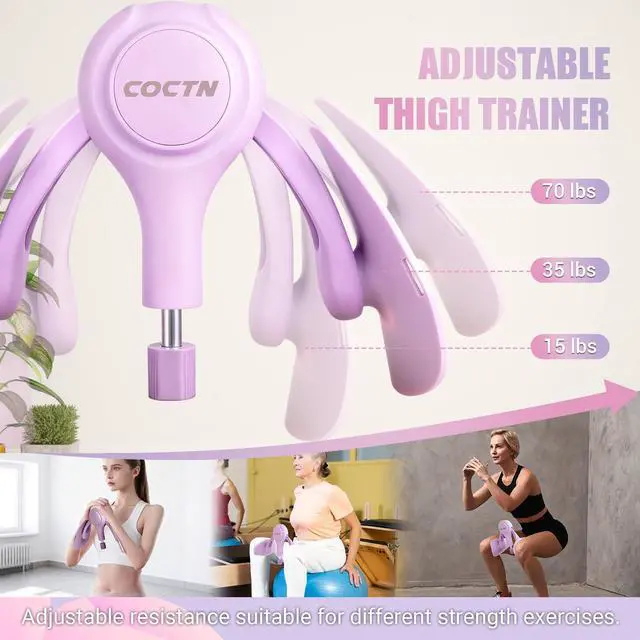 Thigh Trainer for Women, 15-70LB Adjustable Resistance Inner Thigh Exerciser for Pelvic Floor Muscle Repair, Thigh Workout Kegel Exercise Equipment for Shaping, Yoga & Weight Loss at Home Gym -Purple