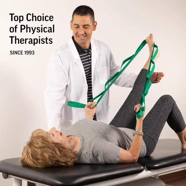 This stretching strap offers supreme versatility and is the top choice of physical therapists. It can be used for warm-up, exercise, and much more.