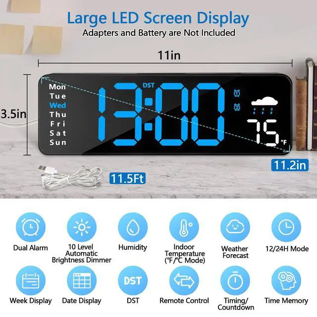 11in Large Display Digital Alarm Clock