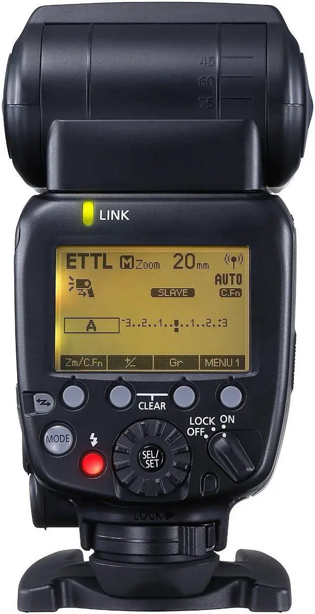 Also, it boasts of a PC sync port and remote release terminal so that you wont have issues with off-camera triggering. Its backlit dot-matrix LCD panel on the rear is a plus, hence, you can conveniently view and change settings when the need arises. With its AF assist beam, you should expect optimum focusing performance when shooting in poor lighting conditions. It is powered by four AA batteries, which are not included in the package, and there is a port for a discretionary external power pack. Also, it is compatible with the ST-E3 Speedlite Transmitter.