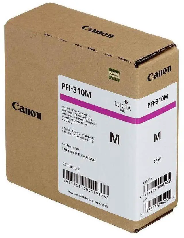 Genuine Canon inks, toner, and paper provide high quality and long lasting prints when you used in combination with our line of Canon printers. There are various types of ink, paper, and toner to fulfill your needs for printing documents and photos whether personally or professionally. Product Type: Ink Cartridge Packaged Quantity: 1 Product Type: Ink Cartridge Compatibility: Canon imagePROGRAF Printers: TX-2000 TX-3000 TX-4000 Manufacturer Part Number: 2361C001 Packaged Quantity: 1 Pack Print Color: Pigment Magenta Print Technology: Inkjet Manufacturer: Canon, Inc Product Model: PFI-310M Product Name: Ink Tank PFI-310M - Pigment Magenta Ink Tank 330ml Print Color: Pigment Magenta Print Technology: Inkjet Brand Name: Canon Product Series: PFI Brand Name: Canon Product Condition: Original Product Condition: Original