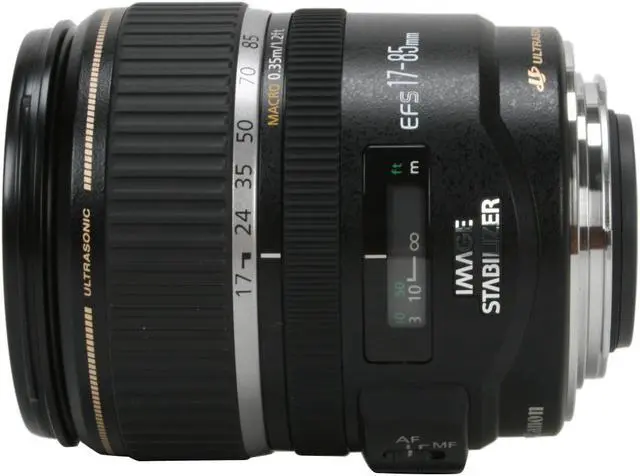 Equivalent to a 28-135mm lens, the Canon EF-S 17-85mm f/4-5.6 IS USM Standard Zoom lens covers wide-angle to telephoto shooting. This high-performance telephoto zoom lens features a ring-type ultra-sonic motor (USM) for fast and silent AF and Canon's Image Stabilization system for low-light use.
