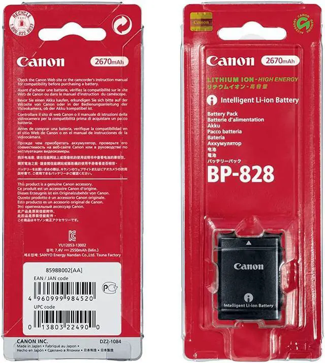 The Canon BP-828 Lithium-Ion Battery Pack works with the VIXIA HF G30, XA20 and the XA25 camcorders. This replacement battery pack features a capacity of 2670mAh and 7.4V of output power. Small and lightweight, lithium-ion batteries can be charged or discharged at any time without developing memory effect.
