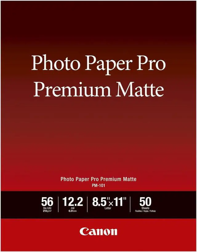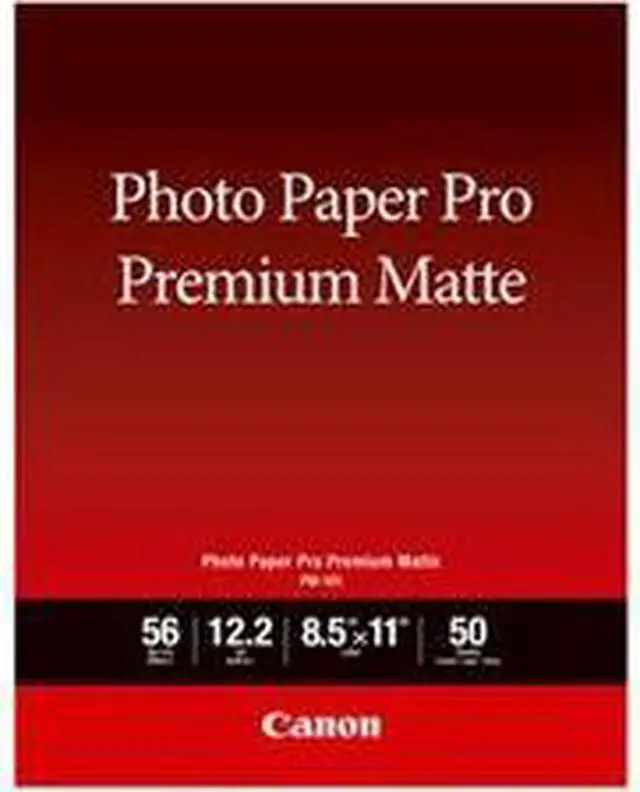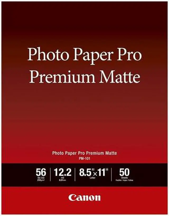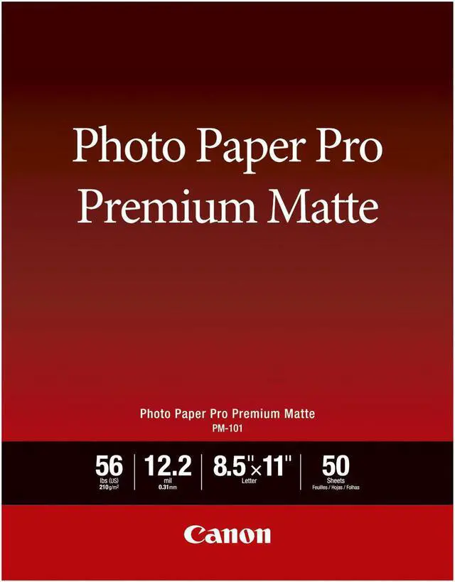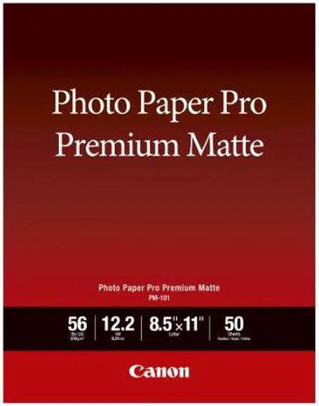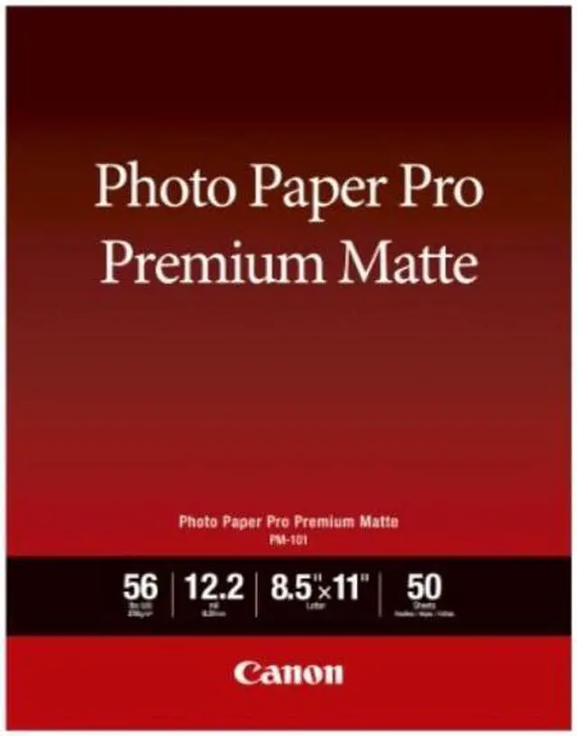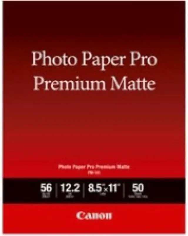 Become a master of print quality with the Canon Pro Premium Matte PM-101 Photo Paper. Sized at 8.5 x11 inches and available in a pack of 50 sheets, this premium photo paper is designed to bring your images to life. Its bright, non-reflective surface ensures your prints stand out, regardless of the lighting conditions. Crafted with a substantial thickness of 12.2 mil and a basis weight of 56 pounds, the Canon Pro Premium Matte PM-101 Photo Paper delivers a high-quality look and feel that's second to none. This professional-grade photo paper boasts a rated brightness of 92%, guaranteeing that your printed images will radiate vibrancy and clarity.