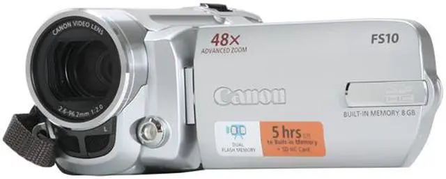 Dual Flash MemoryThe Canon FS10 features an internal 8GB flash memory capable of recording over 5 hours of video (in LP mode) and supports an SD/SDHC memory card for extra storage capability. Flash memory camcorders consume less power, respond faster and are more shock-resistant.