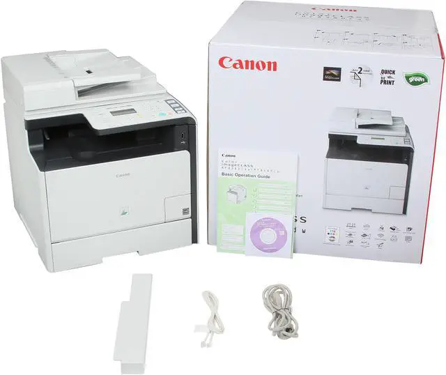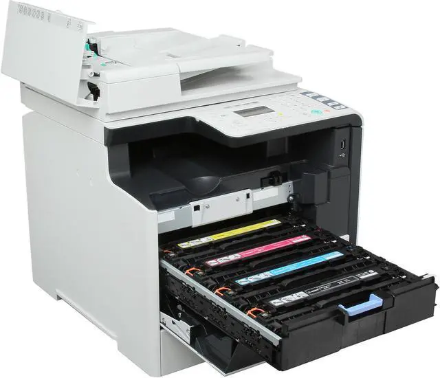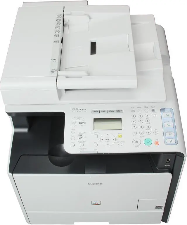 | Features | Duplex Versatility: Two sided printing, scanning, copying and faxing Scan to and print from USB for files on the go 250-sheet cassette plus 50-sheet multipurpose tray; optional 250-sheet cassette Up to 50-sheet DADF (Duplex Automatic Document Feeder) 33.6 Kbps Super G3 fax Remote device management through embedded web server User-friendly 5-line LCD for easy navigation Password-protected Department ID Management helps to control device usage Single Cartridge System for cost-efficient supplies replenishment |