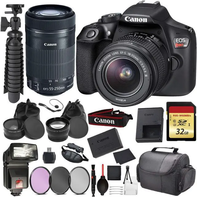 Includes: Canon EOS Rebel T6 DSLR Camera EF-S 18-55mm f/ 3.5 - 5.6 DC III Lens EF-S 55-250mm f/4- 5.6 IS STM