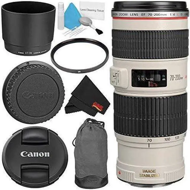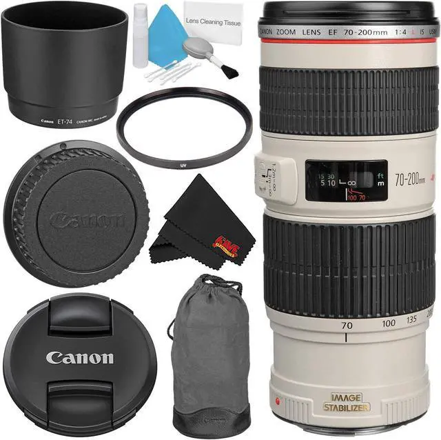 - This 6AVE Bundle includes Canon EF 70-200mm f/4L IS USM Lens (1258B002) + All Standard Manufacturer Included Items, 67mm Ultraviolet UV Filter, 5 piece Lens Cleaning Kit, Microfiber Cleaning Cloth