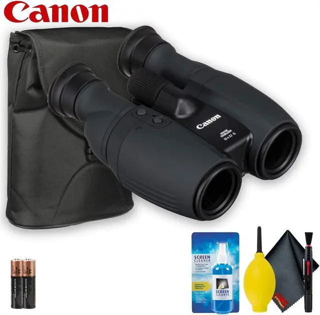 What's In The Box: Canon 10x32 IS Image Stabilized BinocularOne-Piece Ocular Rainguard with CordNeck StrapCarrying Case2 x AA BatteriesLimited 3-Year