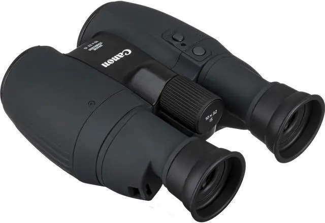 Adapting the IS system from their line of EF lenses, the Canon 10x32 IS Image Stabilized Binocular employs a lens-shift system uses a combination of a vibration gyro-mechanism and microprocessors that detect and counter the appearance of hand-shake by moving the internal lens assembly to make the image appear steady. Two IS modes allow the performance to be tailored to the situation: Normal IS is ideal for moving or multiple subjects, while Powered IS improves the stabilization when observing a single stationary subject. An intuitive two-button user interface makes choosing the mode simple and easy. The IS runs on two included AA batteries, and when not using the image stabilization, the optic will operate as a conventional pair of binoculars.