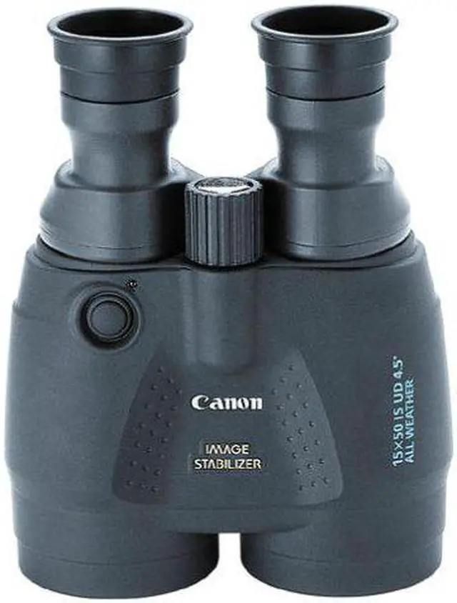 Amazon. com Product Description With its wide 50mm objective lenses and high magnification, these rugged, all-weather Canon Image Stabilizer binoculars are destined to set a new and higher benchmark for image brightness, clarity and ergonomic design. Leave your tripod at home when you use the new Canon 15x50 binoculars. Canon has once again made its world-renowned optical image stabilizer more convenient to use on this all-weather binocular. With a push of a button, bumpy images are stabilized instantly for maximum viewing. Multicoated ultralow dispersion (UD) objective elements add contrast, clarity, and color fidelity.