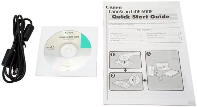 | Package Contents | CanoScan LiDE 600F USB Cable User Manual Support Disk |