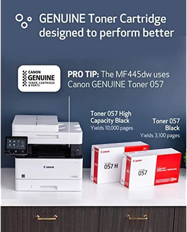 Designed for small and medium-sized businesses, the Canon imageclass MF445dw model balances Speedy performance, minimal maintenance, And the ability to add an extra paper tray. A 5" Color touchscreen delivers an intuitive user experience and can be customized by a device administrator to help simplify many daily tasks.