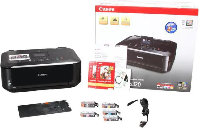 High Performance, Five Individual Ink Tank SystemThis 5-color ink system consists of four dye-based inks for professional-looking black & white and color photos. A pigment-based black ink produces exceptionally crisp text. Plus, only replace the color ink tank that runs out. Together with enhanced FINE print head technology and genuine Canon photo papers, the PIXMA MG5320 Inkjet Photo All-In-One prints beautiful borderless photos that will last up to 300 years when stored in an archival-quality photo album.