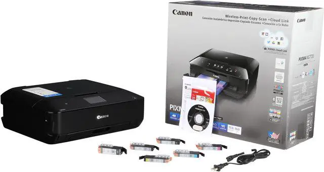 | Features | Printer Features AirPrint, Auto Duplex Printing, Auto Photo Fix II, Borderless Printing, CD/DVD Printing, Document Printing, Easy PhotoPrint+, Full HD Movie Print, Google Cloud Print, Grayscale Printing, Image Cropping, Mopria Device Printing, My Image Garden, Photo Direct Printing (Memory Card), Photo Printing, Canon PRINT app, PIXMA Cloud Link, PIXMA Touch & Print (NFC), Quiet Mode, Red-Eye Correction, Special Filters , Wireless PictBridge, Wireless Printing Other Features Intelligent Touch System with 3.5 Touch LCD, 6-Color Ink System with Gray Ink, CREATIVE PARK PREMIUM, Rated EPEAT Silver, Auto Power On/Off, Quiet Mode, Self-Opening Output Tray, Canon PRINT app, PIXMA Cloud Link, QuickStart |