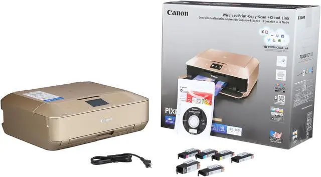 | Features | Printer Features AirPrint, Auto Duplex Printing, Auto Photo Fix II, Borderless Printing, CD/DVD Printing, Document Printing, Easy PhotoPrint+, Full HD Movie Print, Google Cloud Print, Grayscale Printing, Image Cropping, Mopria Device Printing, My Image Garden, Photo Direct Printing (Memory Card), Photo Printing, Canon PRINT app, PIXMA Cloud Link, PIXMA Touch & Print (NFC), Quiet Mode, Red-Eye Correction, Special Filters , Wireless PictBridge, Wireless Printing Other Features Intelligent Touch System with 3.5 Touch LCD, 6-Color Ink System with Gray Ink, CREATIVE PARK PREMIUM, Rated EPEAT Silver, Auto Power On/Off, Quiet Mode, Self-Opening Output Tray, Canon PRINT app, PIXMA Cloud Link, QuickStart |