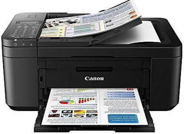 Canon PIXMA TR4520 Wireless Office All-In-One Printer - BLACK New space saving design is approx. 30% smaller than previous MX models. Enjoy new levels of printing convenience utilizing features such as AirPrint and Google Cloud Print to easily print from your tablet or Smartphone. The fully integrated Auto Document Feeder is elegantly designed to be both functional and practical. Auto Document Feeder (ADF), AE (Auto Exposure) Copy, Borderless Copy, Collated Copy, 2-on-1 Copy, 4-on-1 Copy, Fit-to-Page, Preset Copy Ratios, Frame Erase Copy (Flatbed), Zoom. Auto Scan Mode, Network Scan, PDF Password Security, Push Scan, Send to Cloud. Answering Machine Connectivity, Caller Rejection, Check RX Fax Info., Dial Search, Extra Fine Mode, Fax Reception Reject, Fax Number Re-Entry, Memory Transmission, Redial, Remote Reception. Compatible Inks - PG-245 Black Ink Cartridge, CL-246 Color Ink Cartridge including XL and PG-245XL /246XL Combo Value Pack.