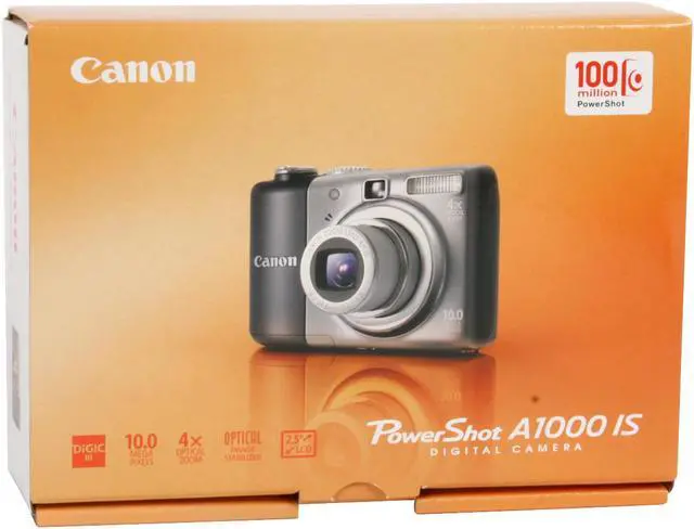 The A1000 IS is part of Canon's long line of exceptional PowerShot cameras. A 10.0 megapixel sensor captures all the details in the viewfinder for true to life images whether they are on a webpage or printed on a PictBridge printer. The 4X optical zoom and Optical Image Stabilization system lets you get great close-ups without worrying about camera shake.