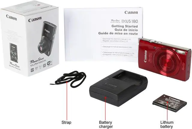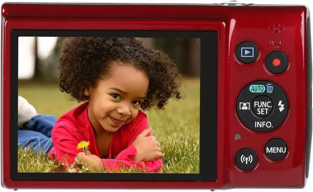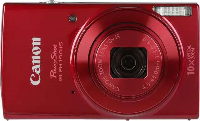 Canon--PowerShot ELPH 190 IS - Red. 10x Optical Zoom with Optical Image Stabilizer helps you capture images with flexibility and ease. Built-in Wi-Fi and NFC allows for easy sharing and transferring of images and videos. 20.0 Megapixel CCD sensor combines with the DIGIC 4+ Image Processor to help deliver stunning image quality. Capture 720p HD video. Smart AUTO intelligently selects the proper settings based on predefined shooting situations. Scene Modes such as Fisheye Effect, Toy Camera Effect and Monochrome provide creative freedom to capture your photos. ECO Mode helps reduce power consumption for longer battery life. Help Button provides simple explanations and easy control of your settings.