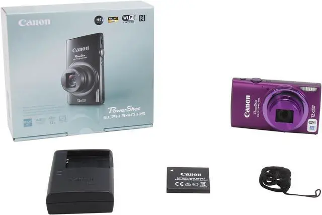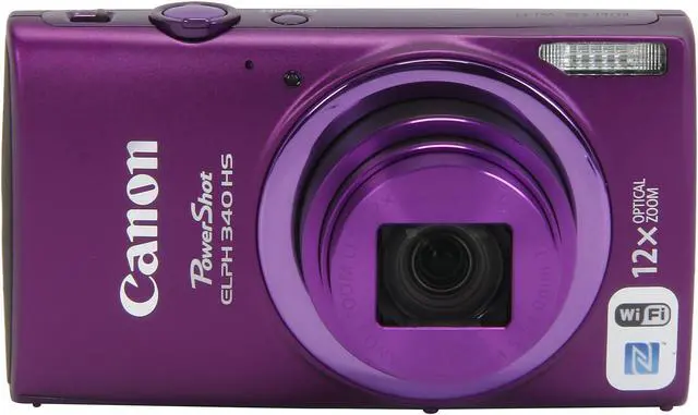Slim and sleek with style to spare, the new PowerShot ELPH 340 HS camera is a creative force to be reckoned with. Its powerful 12x Optical Zoom puts you into the action from anywhere, ready to capture with the quality only Canon optics can deliver. Built-in Wi-Fi® means you're always connected to your world, transferring images and video directly to popular social networking sites, mobile devices and your computer. You can also shoot remotely with a compatible smartphone or tablet to easily capture group photos, and connect wirelessly to a compatible Android™ device with a simple touch using built-in NFC (Near Field Communication). The PowerShot ELPH 340 HS has Creative Shot mode, so you can discover the fun of creating artistic photos that are as unique as you are. The high-resolution 16.0 Megapixel High-Sensitivity CMOS sensor combines with the DIGIC 4+ Image Processor to create the Canon HS SYSTEM, giving you impressive image quality in all situations, including low light. And with advanced features like 1080p Full HD video in MP4 format, Hybrid Auto and Smart AUTO that recognizes 32 predefined scenes, the PowerShot ELPH 340 HS captures the excitement of your everyday life with style.