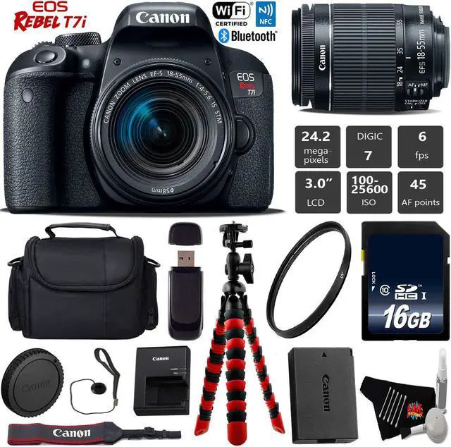 Packing a versatile feature-set in a sleek and portable body, the EOS Rebel T7i DSLR from Canon offers advanced imaging capabilities along with a convenient range of controls and connectivity.