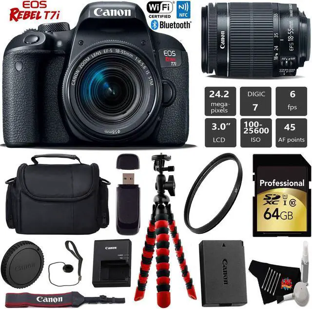 Packing a versatile feature-set in a sleek and portable body, the EOS Rebel T7i DSLR from Canon offers advanced imaging capabilities along with a convenient range of controls and connectivity.