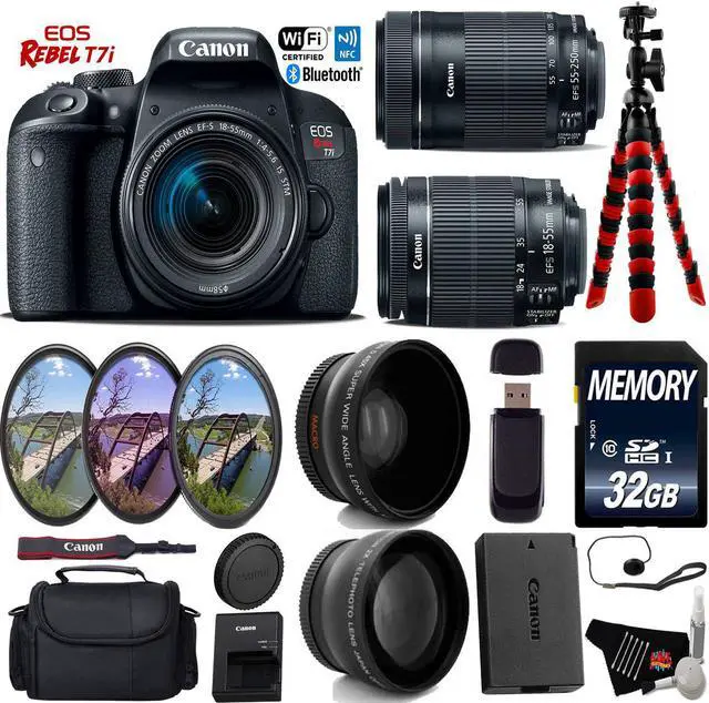 Packing a versatile feature-set in a sleek and portable body, the EOS Rebel T7i DSLR from Canon offers advanced imaging capabilities along with a convenient range of controls and connectivity.