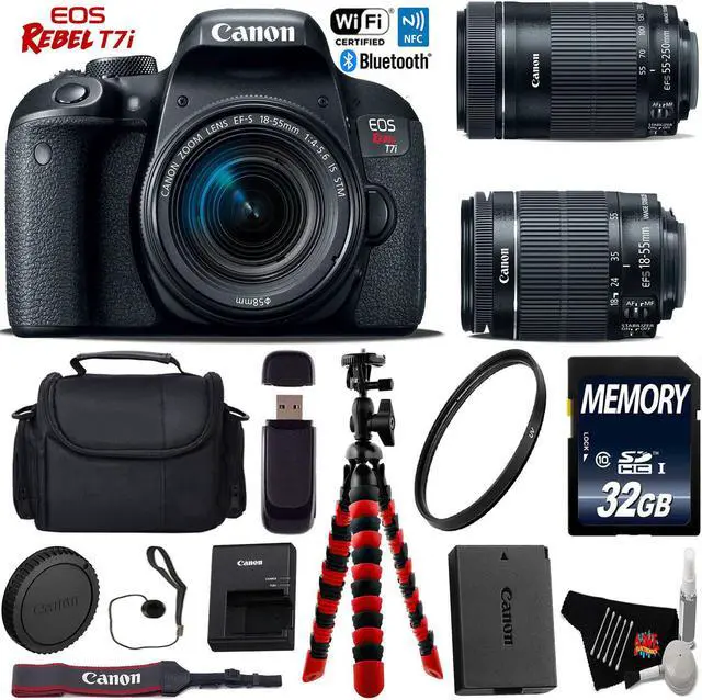 Packing a versatile feature-set in a sleek and portable body, the EOS Rebel T7i DSLR from Canon offers advanced imaging capabilities along with a convenient range of controls and connectivity.